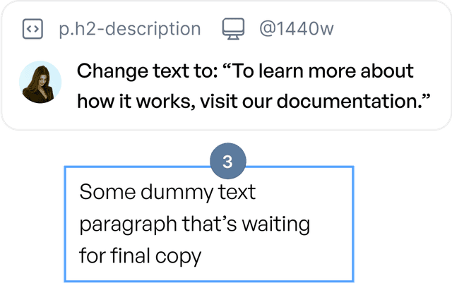 Drop annotations directly on any element. No selectors. No screenshots. Just click and type.